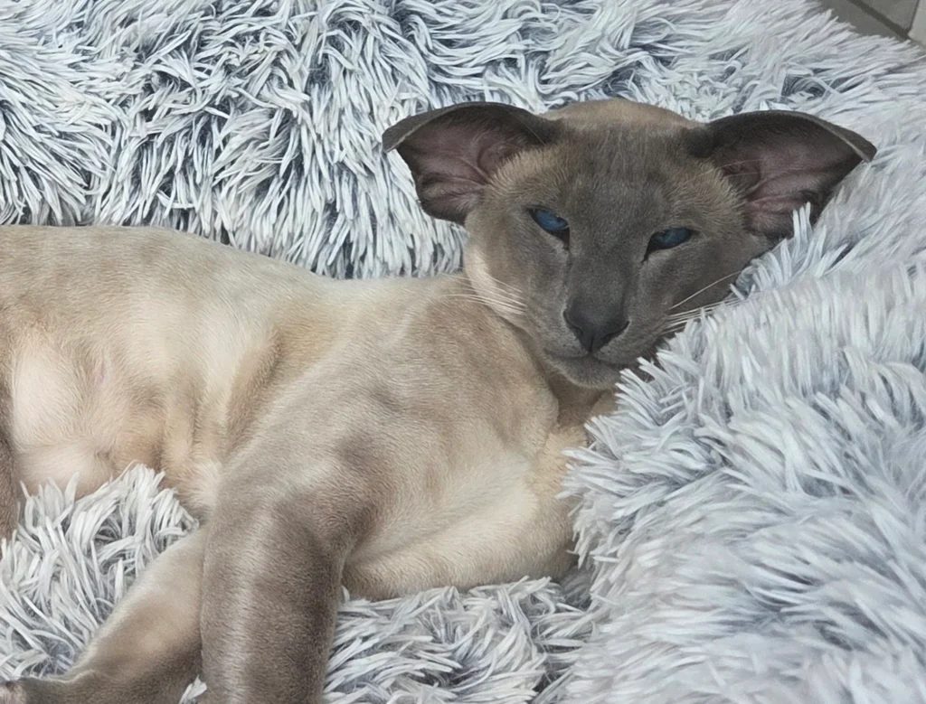 This blue tabby point Siamese stud boy carries chocolate and is heterozygous tabby. He is tested PRA negative.